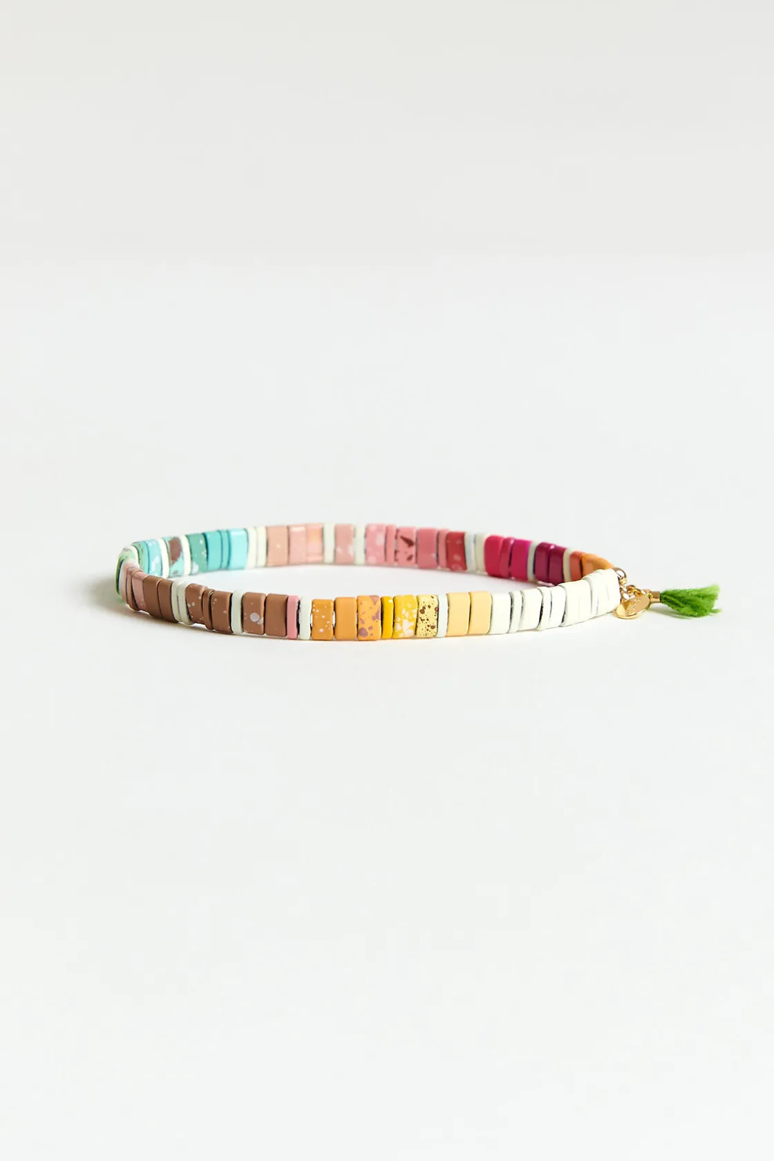 | Détails | • Bracelet extensible • Taille unique • Perles d’émail • Quincaillerie en or vermeil 14 carats • Fabriqué à la main aux États-Unis, par des artisans locaux • Marque Shashi® |