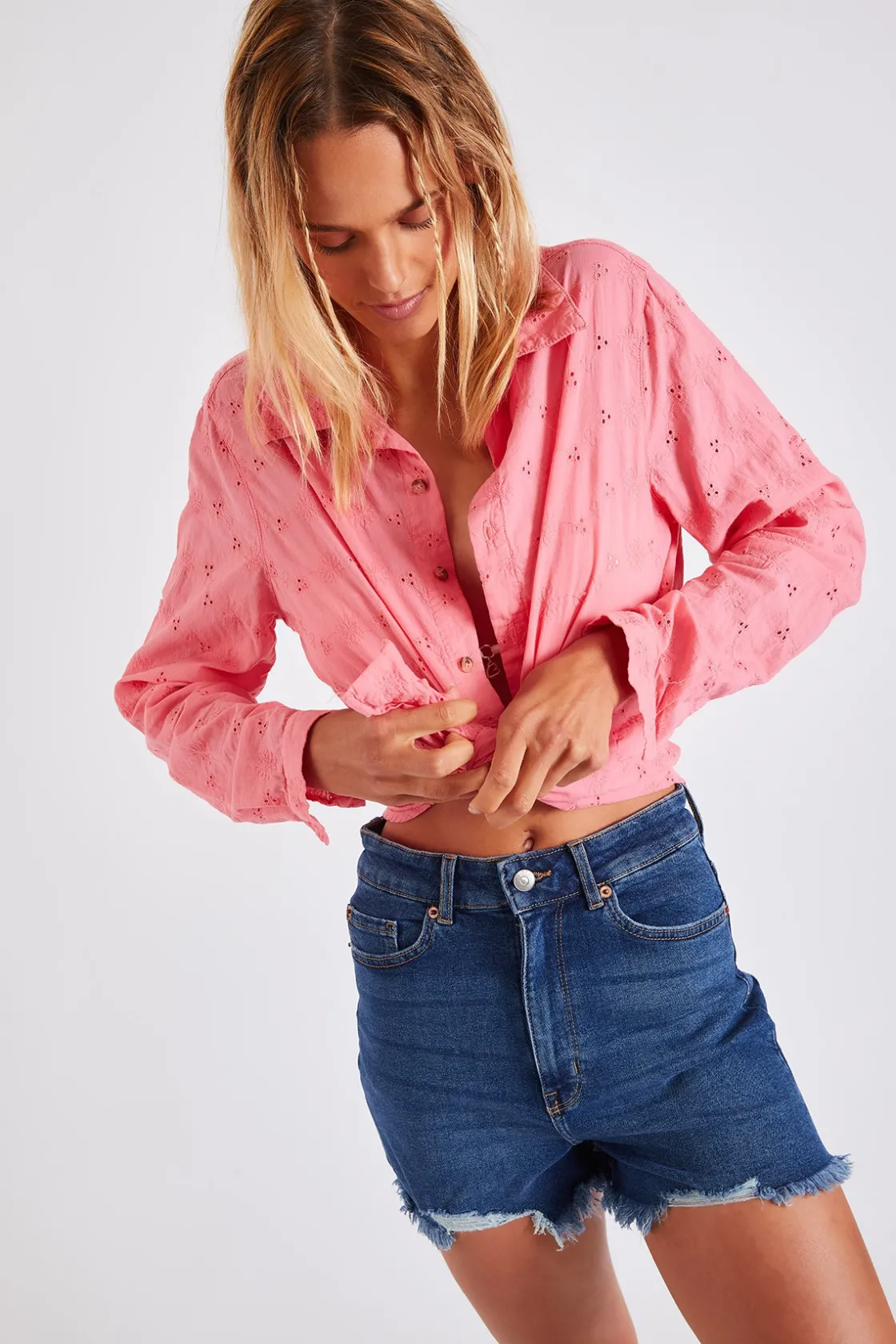 | Détails | • Chemise broderie anglaise • 100% coton • Coloris rose • Manches retroussables |