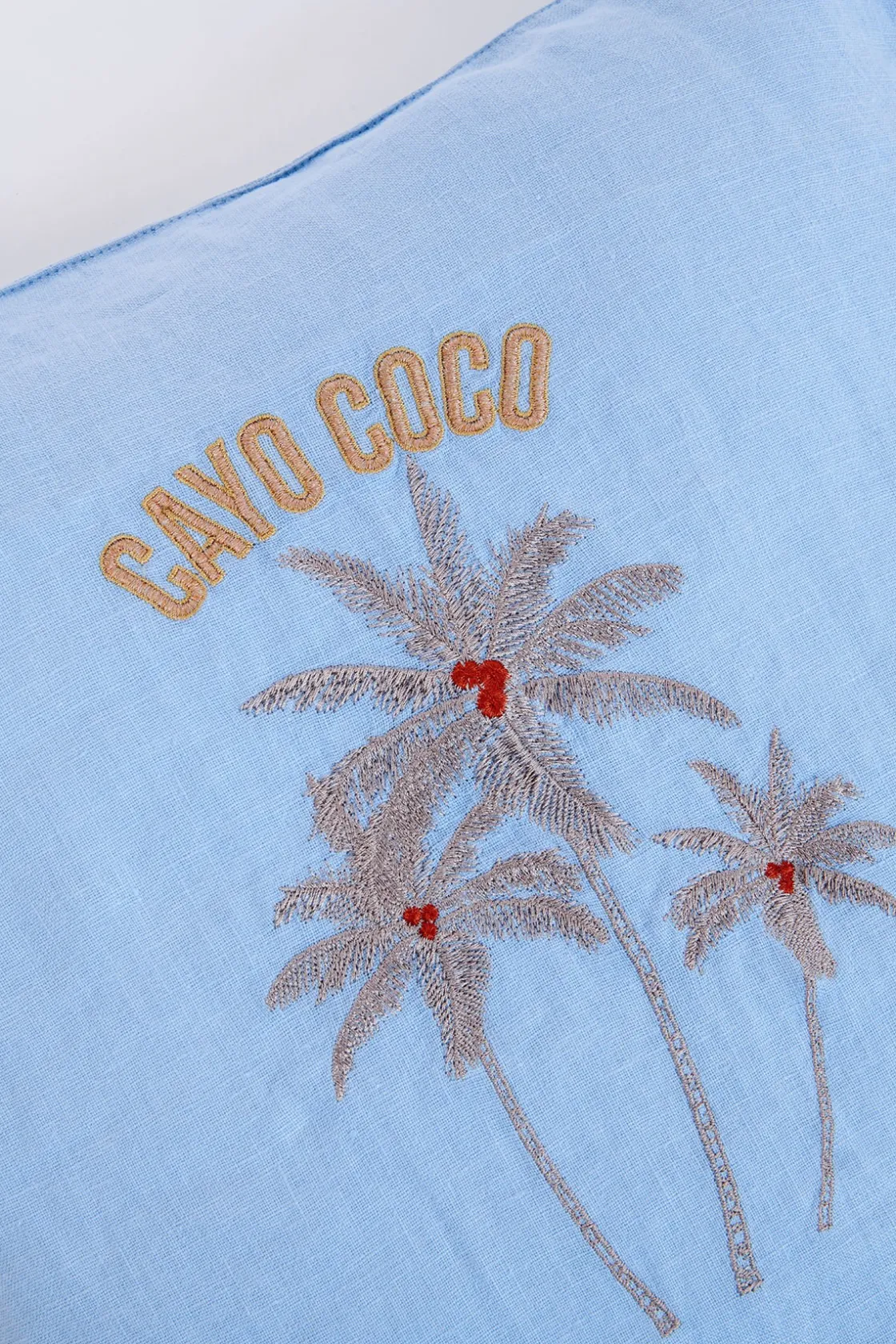 | Description | Housse de coussin brodée bleu ciel Orama Coco de la collection Banana Moon. Ajoutez du soleil à votre intérieur! Fun et originale, craquez pour cette housse de coussin 100% lin brodée. |
