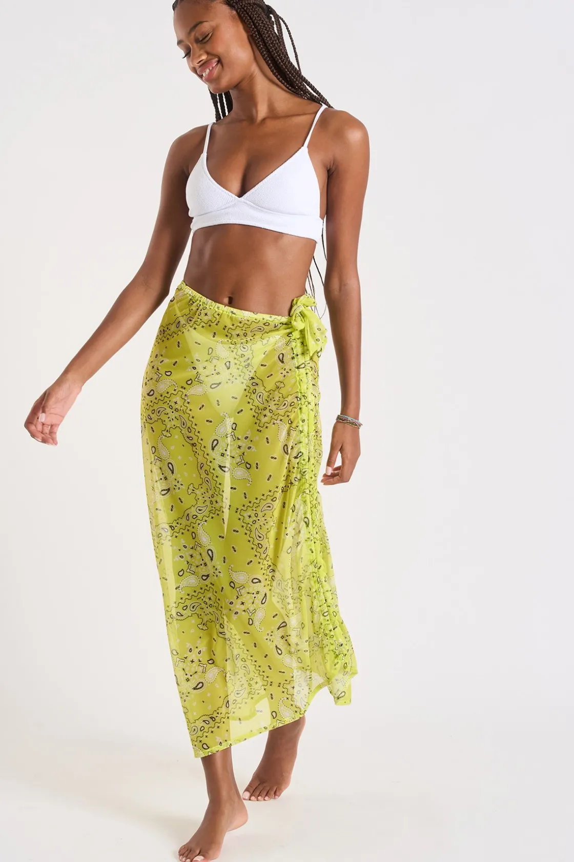 | Détails | • Jupe longue • Esprit paréo • Jupe de plage • Fendue • Se noue à la taille • Imprimé cachemire • Collection Banana Moon |