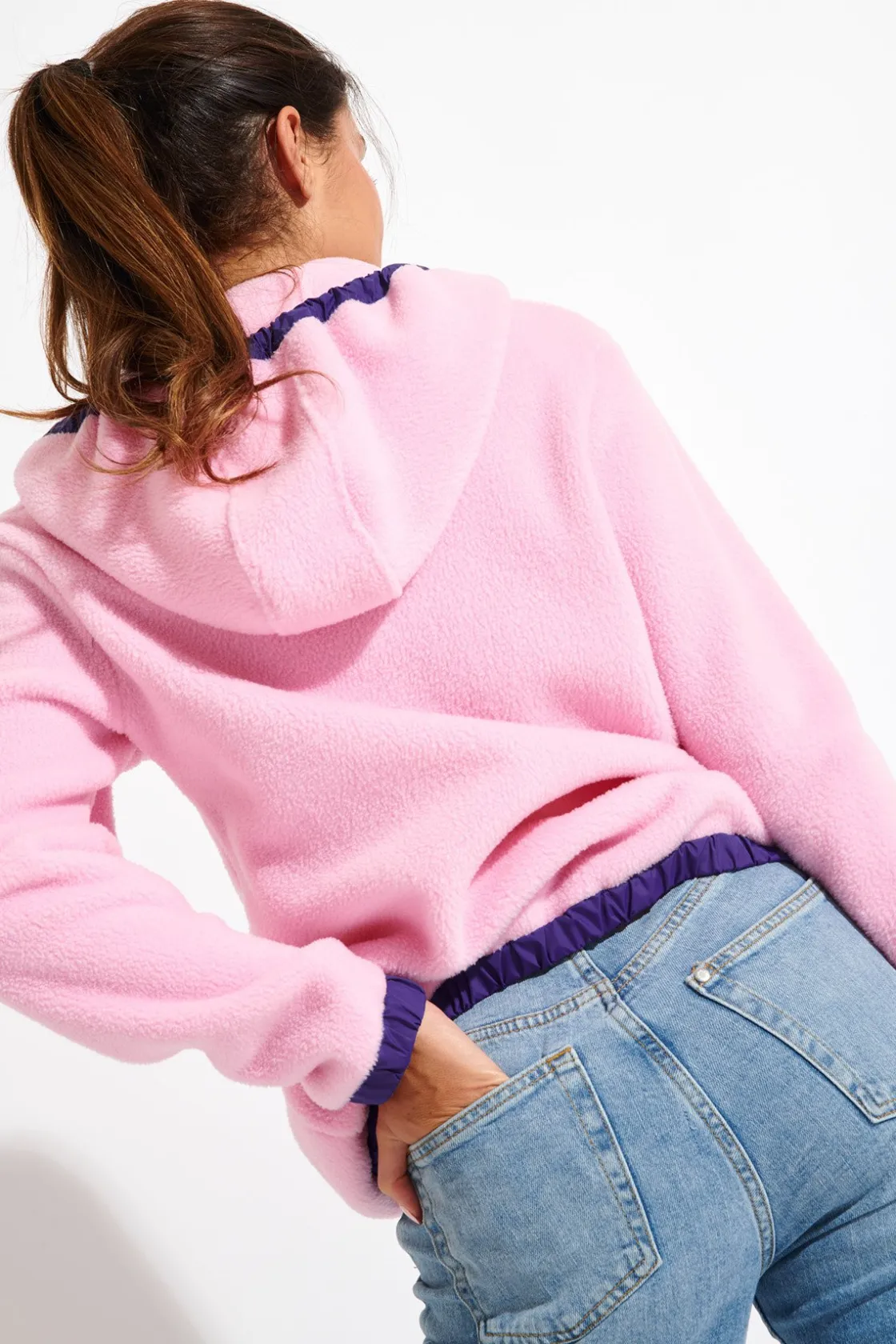 | Détails | • Polaire zippée à capuche • Poches zippées • Détails de nylon contrastés |