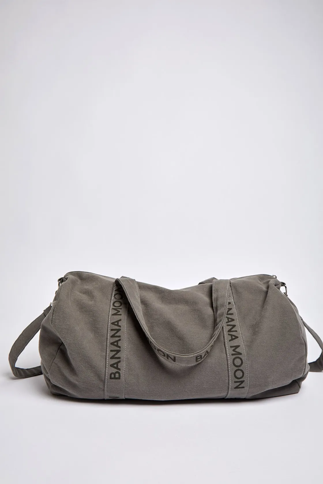 | Détails | • Sac forme sport en coton sergé lavé • 100% coton • Coloris kaki • Doubles anses : porté mains et porté épaules • Entièrement doublé kaki • Fermeture zip • Patch Banana Moon cousus sur le devant • Dimensions : 52×45 |