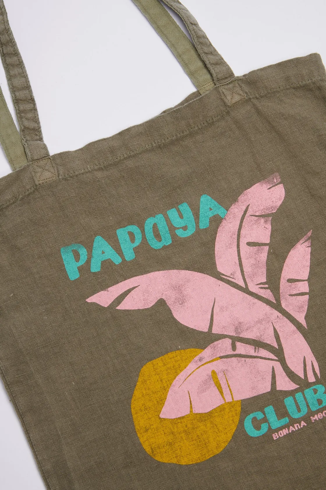 | Détails | • Totebag • 100% lin • Coloris kaki • Imprimé Papaya Club • Dimensions : 40cm x 37cm |
