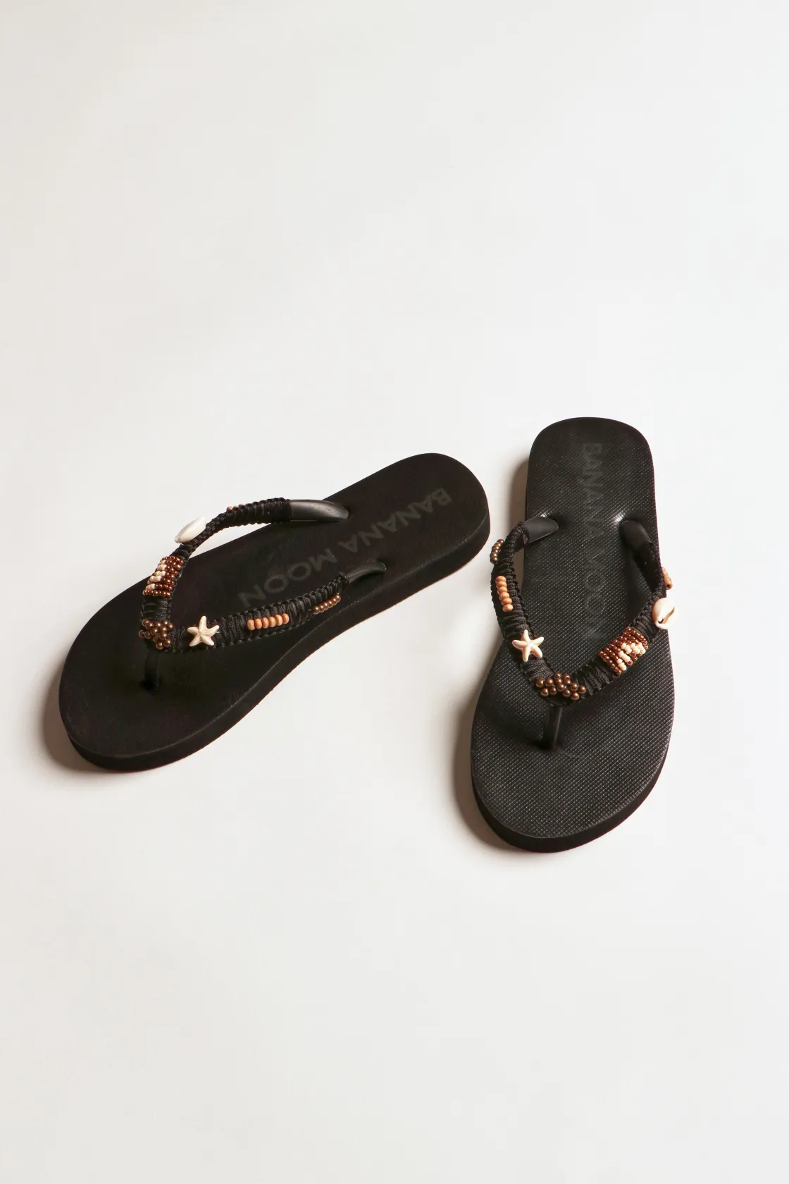 | Détails | • Tongs en caoutchouc • Bride en caoutchouc • Bride ornée de coquillages et perles |