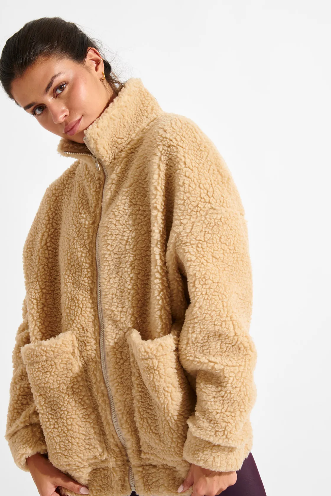 | Détails | • Veste en sherpa • Matière polaire bouclée • 2 grandes poches • Coupe ample • Fermeture zip |