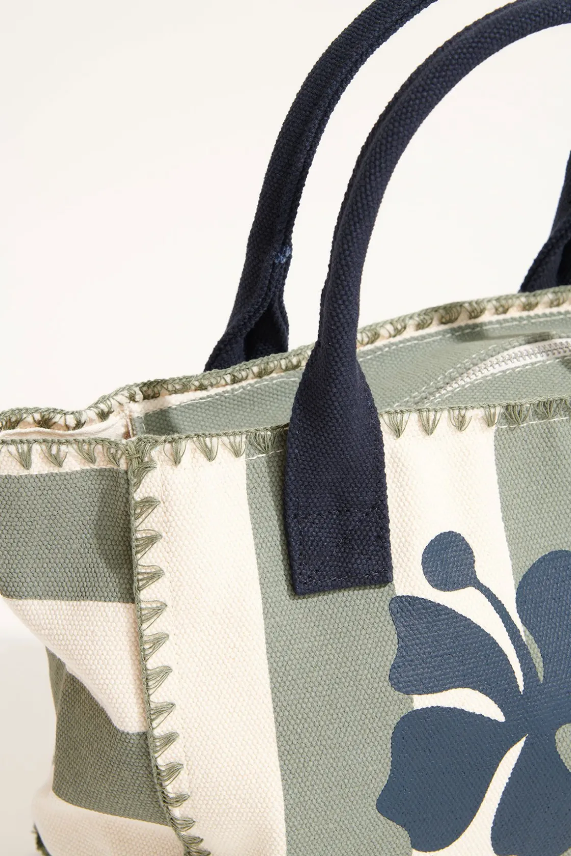 | Détails | • Petit sac cabas • 100% coton • Fermeture zip • Rayures • Dimensions 22.5 cm x 28 cm |