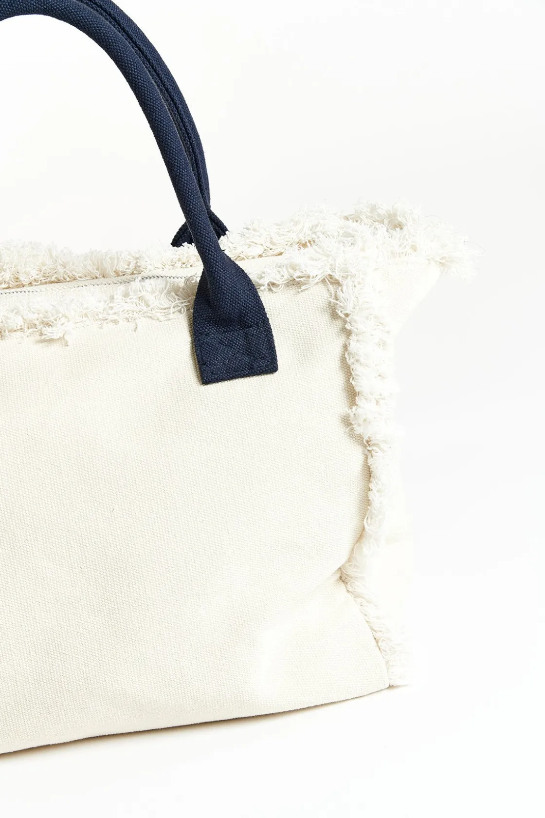 | Détails | • Sac cabas • Anses contrastées • Finitions franges • Dimensions : 32 x 38 cm • Poche intérieure • Se ferme par fermeture éclair |