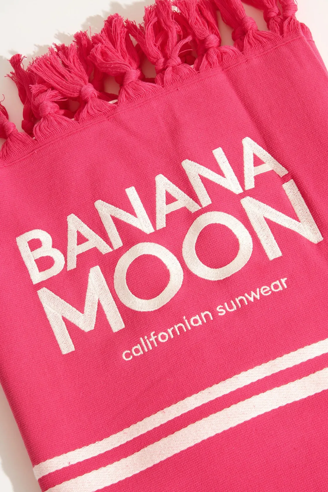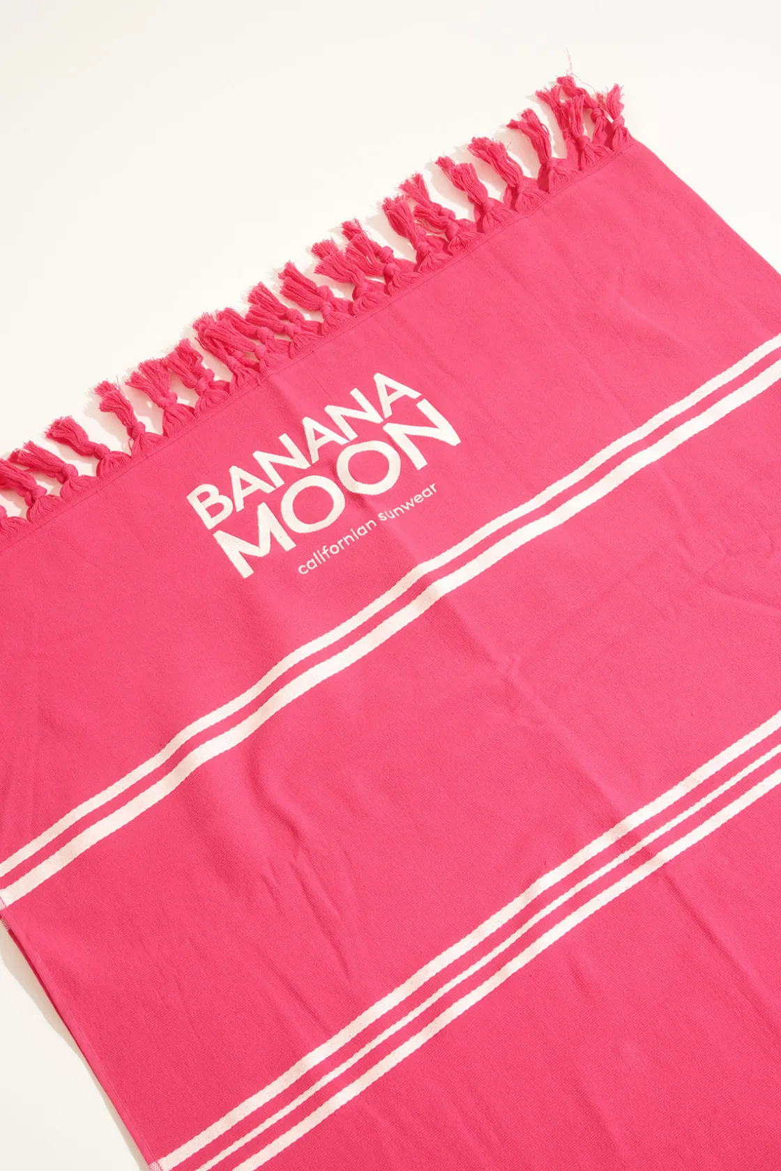 | Détails | • Serviette de plage en coton • Tissage technique jacquard « Banana Moon » • Rayures tissées • Finition franges • Dimension : 90 x 170 cm |