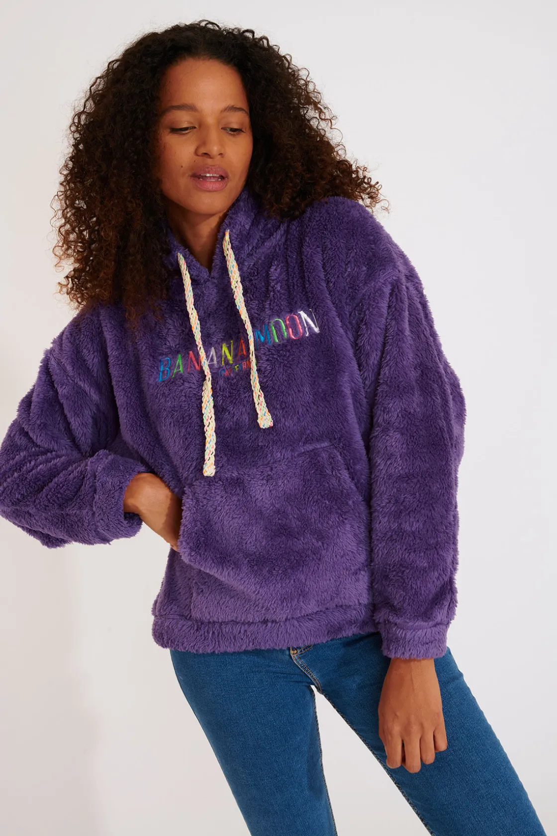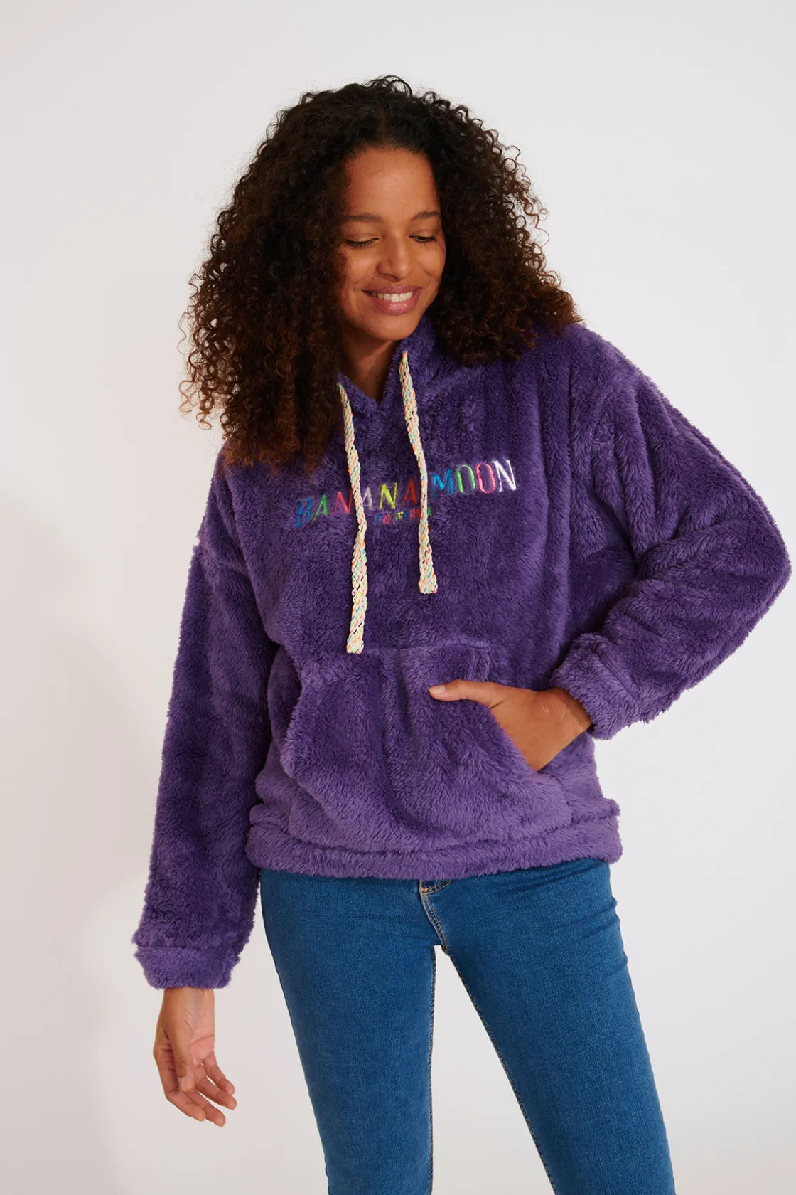 | Détails | • Polaire femme • Matière douce • Lacets colorés • Broderie coloré « Banana Moon » sur le devant • Poches kangourou |