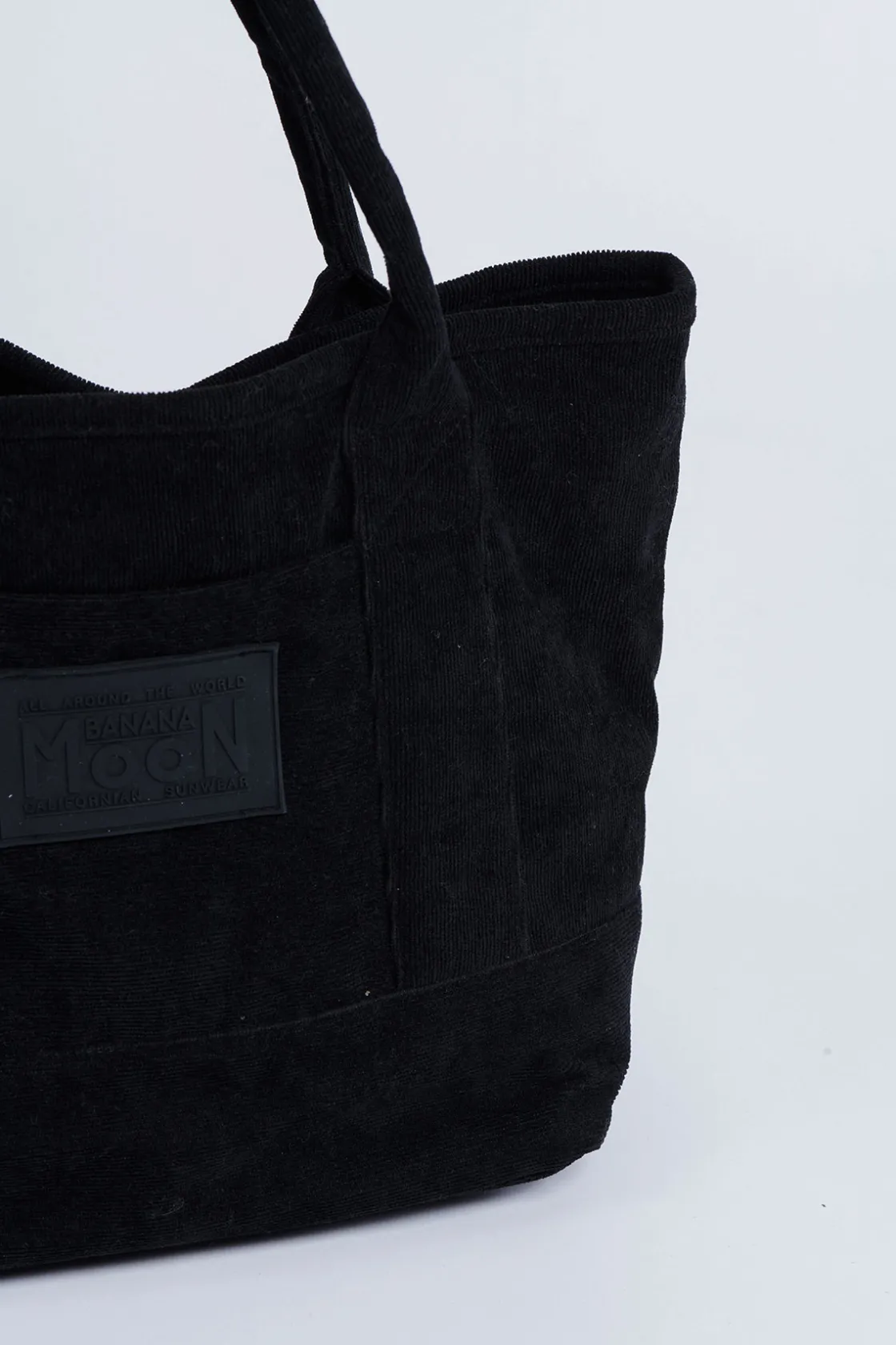| Détails | • Sac cabas noir • Inscription « Banana Moon » • Matière côtelée au toucher velours • Fermeture aimantée au milieu • Poches intérieures et devant • Doublé • 24cm x 36cm |