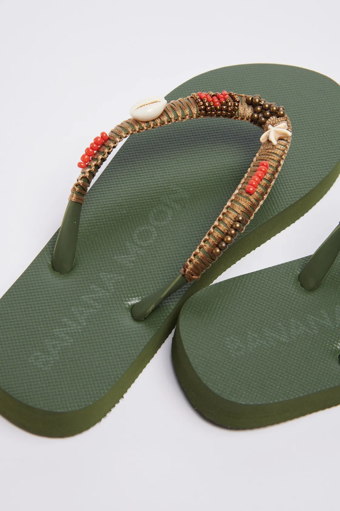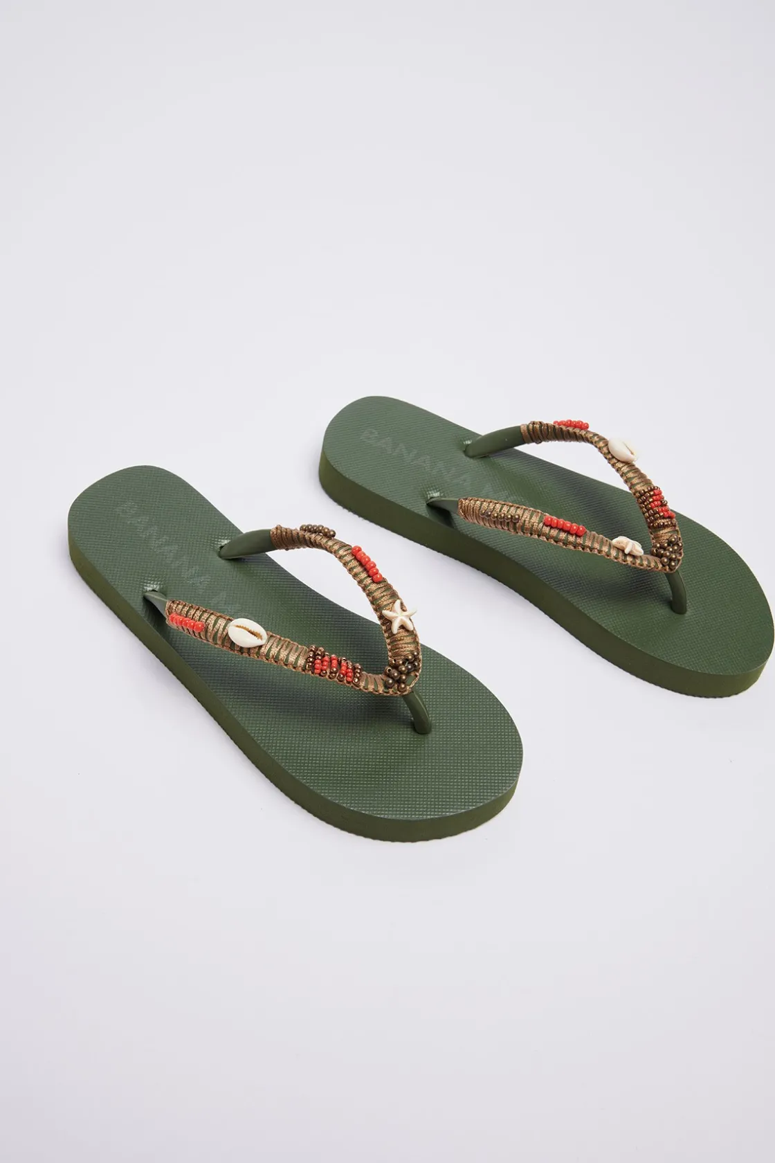 | Description | Tongs kaki à coquillages Lucero Tahuata de la collection été Banana Moon. A la fois confortables et tendances, ces tongs ornées de coquillages sont un indispensable de votre été! Faites votre choix parmi nos différents coloris. |