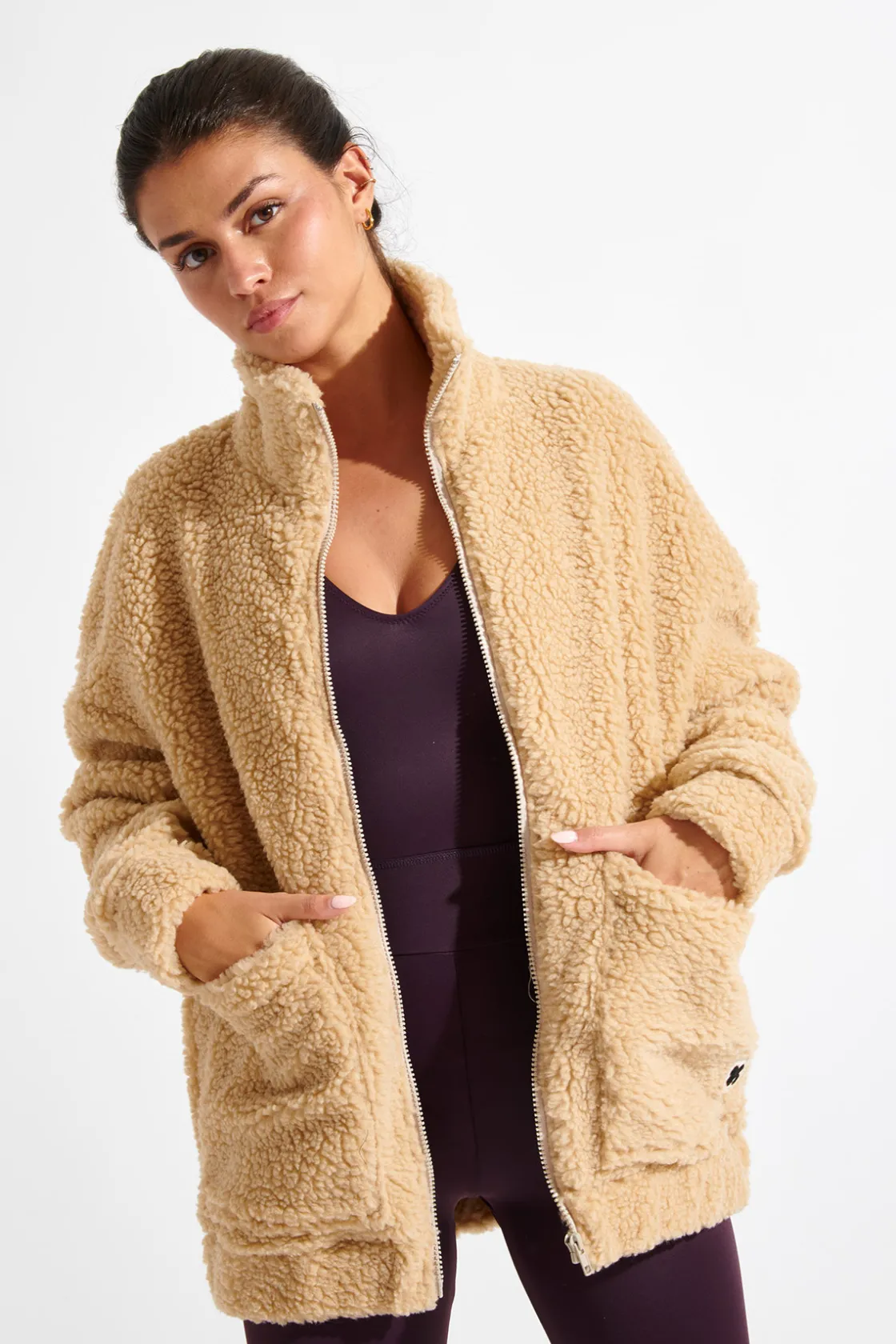 | Détails | • Veste en sherpa • Matière polaire bouclée • 2 grandes poches • Coupe ample • Fermeture zip |